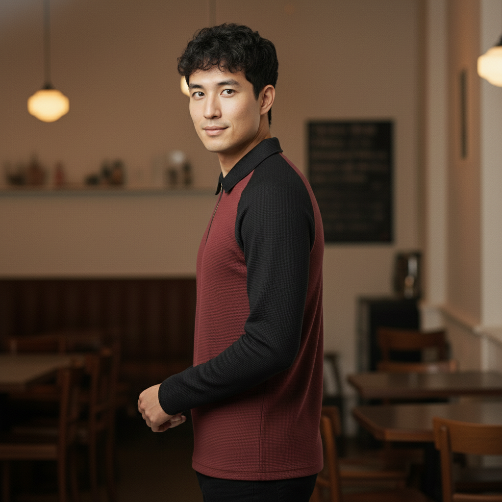Product Overview Upgrade your casual look with this modern long-sleeve polo t-shirt. It features a unique waffle texture and a stylish two-tone design. Available in 5 distinct color combinations (including Black/light Grey, Brown/Black, Dark Gray/Black, and Maroon/Black), this t-shirt is perfect for looking sharp while staying comfortable.
