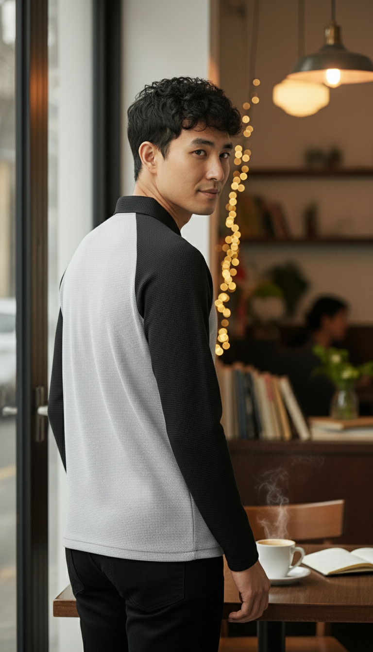 • T-shirt Style: A smart-casual style with a quarter-zip front and a classic collar. The body and sleeves are different colors for a trendy, bold look.