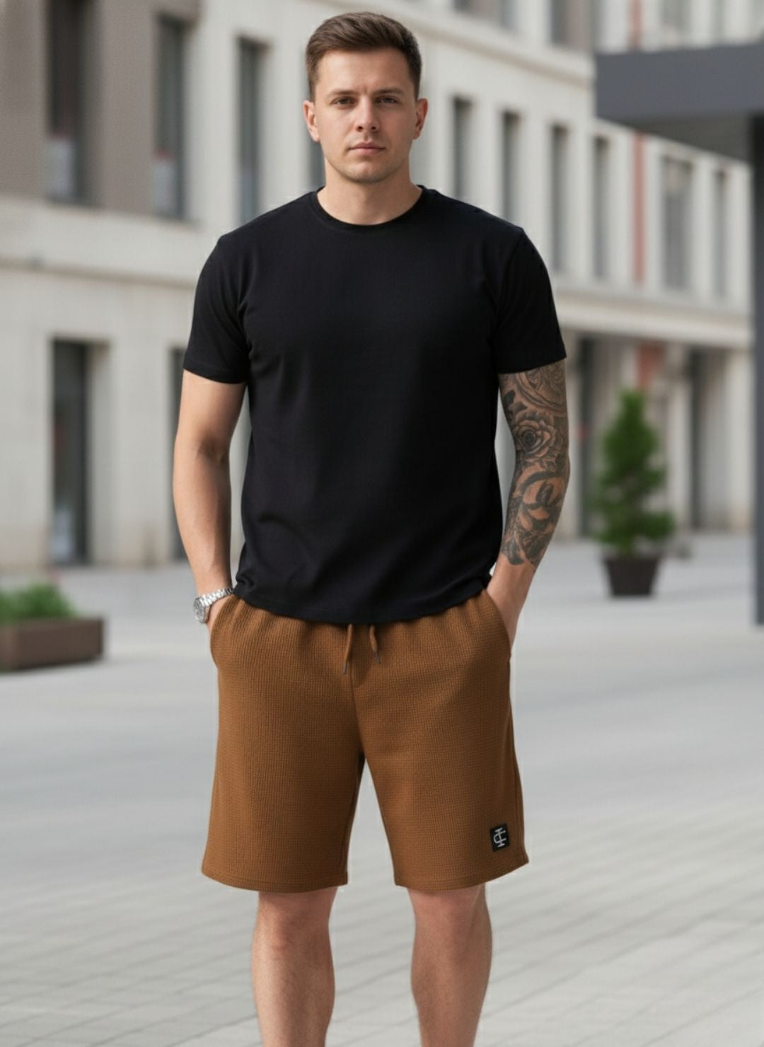 Elevate your everyday casual wear with our Premium Waffle Knit Shorts. Expertly crafted from high-quality Polyester Waffle Fabric, these shorts offer a unique textured finish that is both breathable and durable. Designed for modern comfort, they feature an adjustable drawstring waistband, deep side pockets for functionality, and a signature logo patch on the hem. Whether you are hitting the gym or lounging at home, these shorts provide the perfect blend of style and ease.
