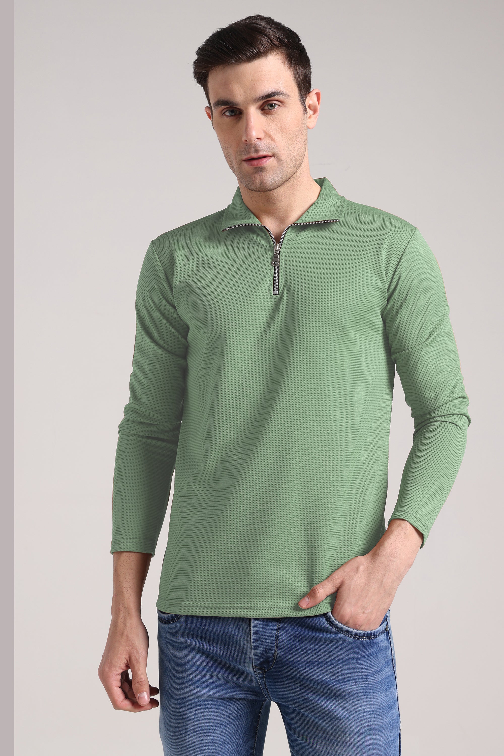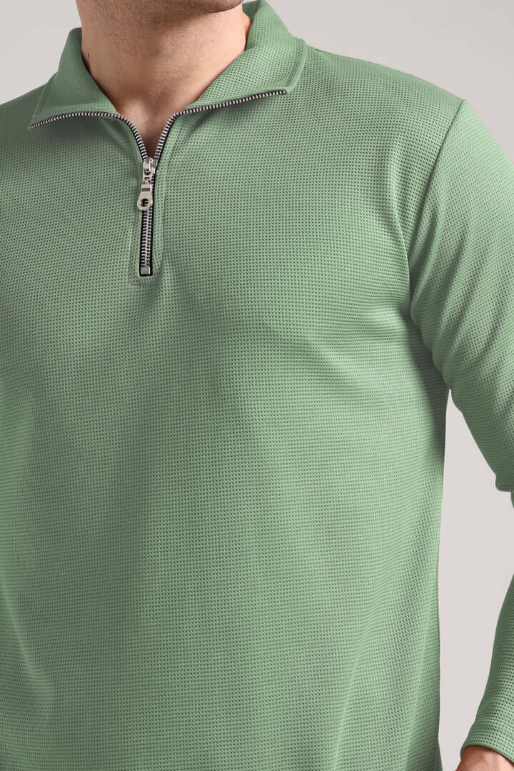 Men's Outer Mesh Pastel Green Full Sleeve Zipper T-Shirt