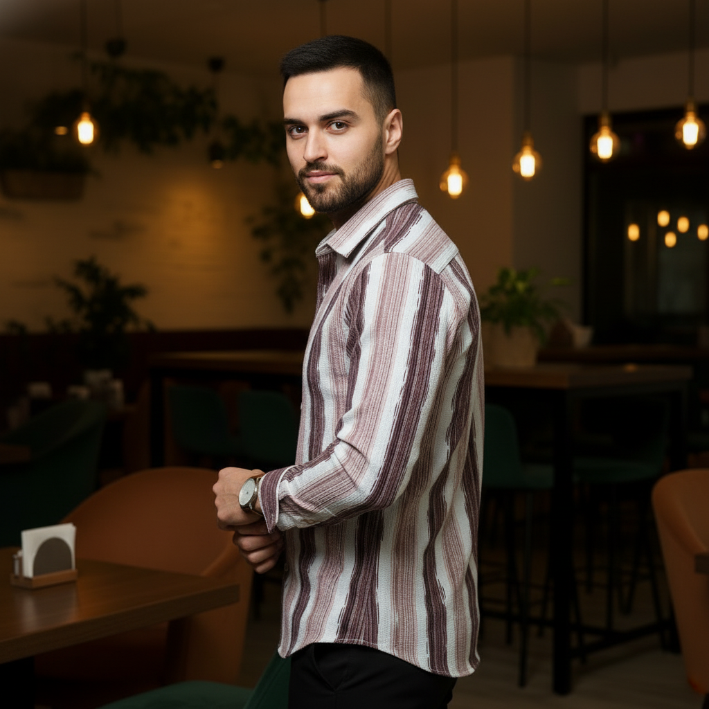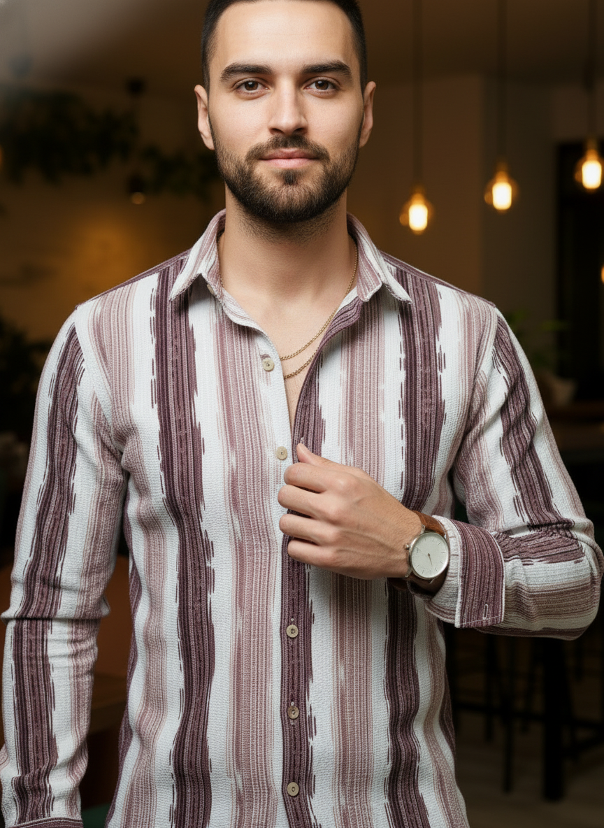 Upgrade your casual wardrobe with our Men's Winkle Ribbed Shirts, designed for the modern trendsetter. Crafted from high-quality Polyester Winkle Ribbed Fabric, this shirt features a unique crinkled texture that adds depth and sophistication to your look. The artistic vertical brushstroke pattern creates a slimming, stylish silhouette perfect for parties, vacations, or smart-casual outings. Lightweight, breathable, and wrinkle-resistant, it is the ultimate low-maintenance statement piece.