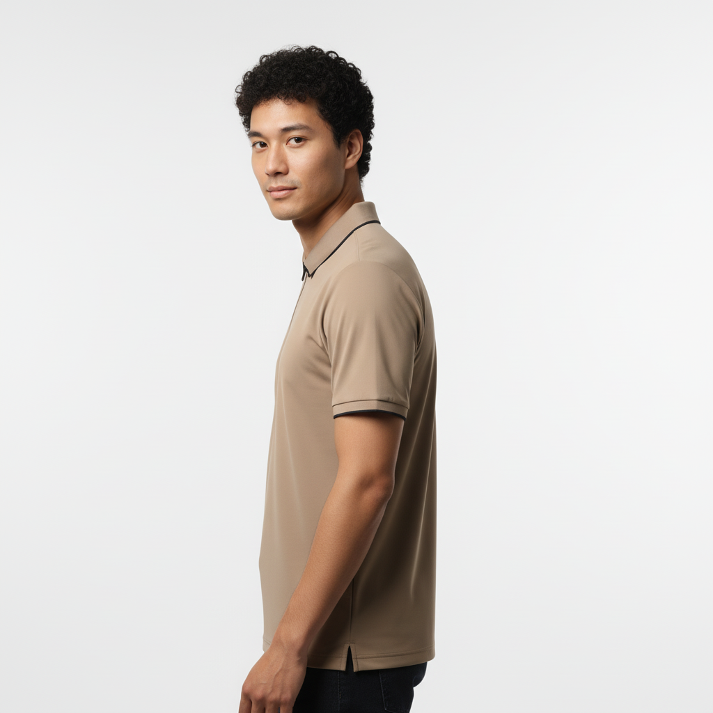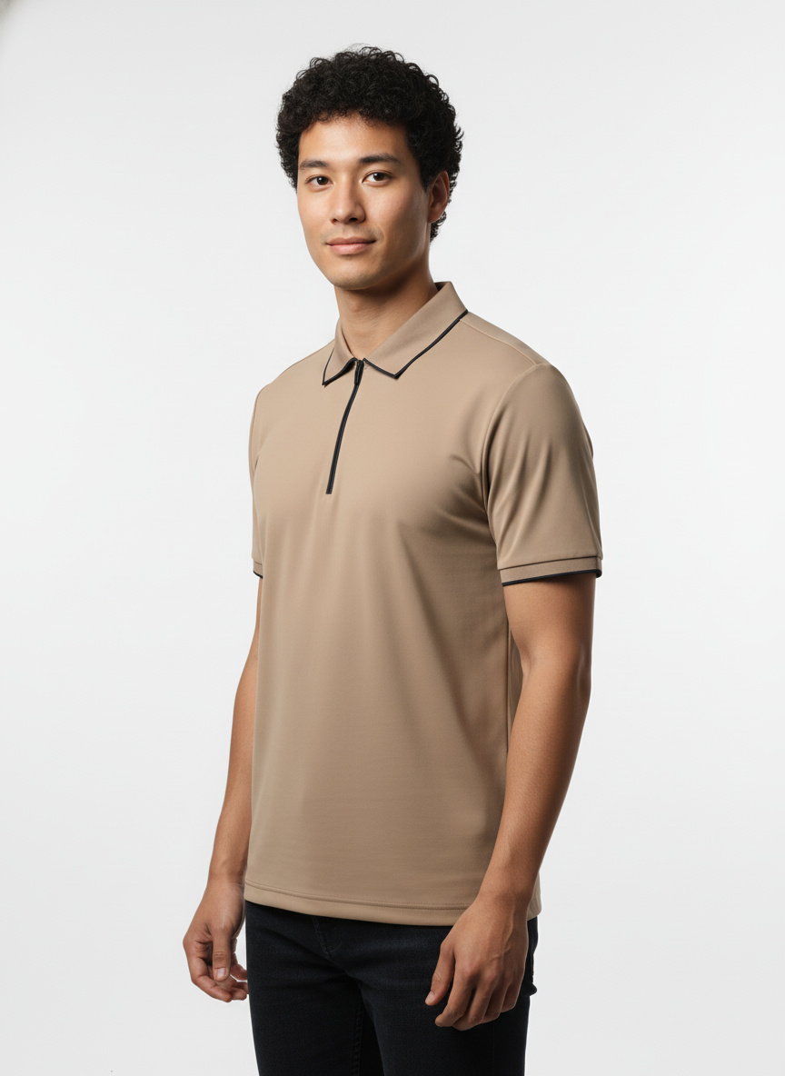 Upgrade your daily style with our new Quarter-Zip Stretch Polo. This t-shirt is designed for a smart look that feels relaxed. It features a stylish zipper and unique color lines on the collar and sleeves.