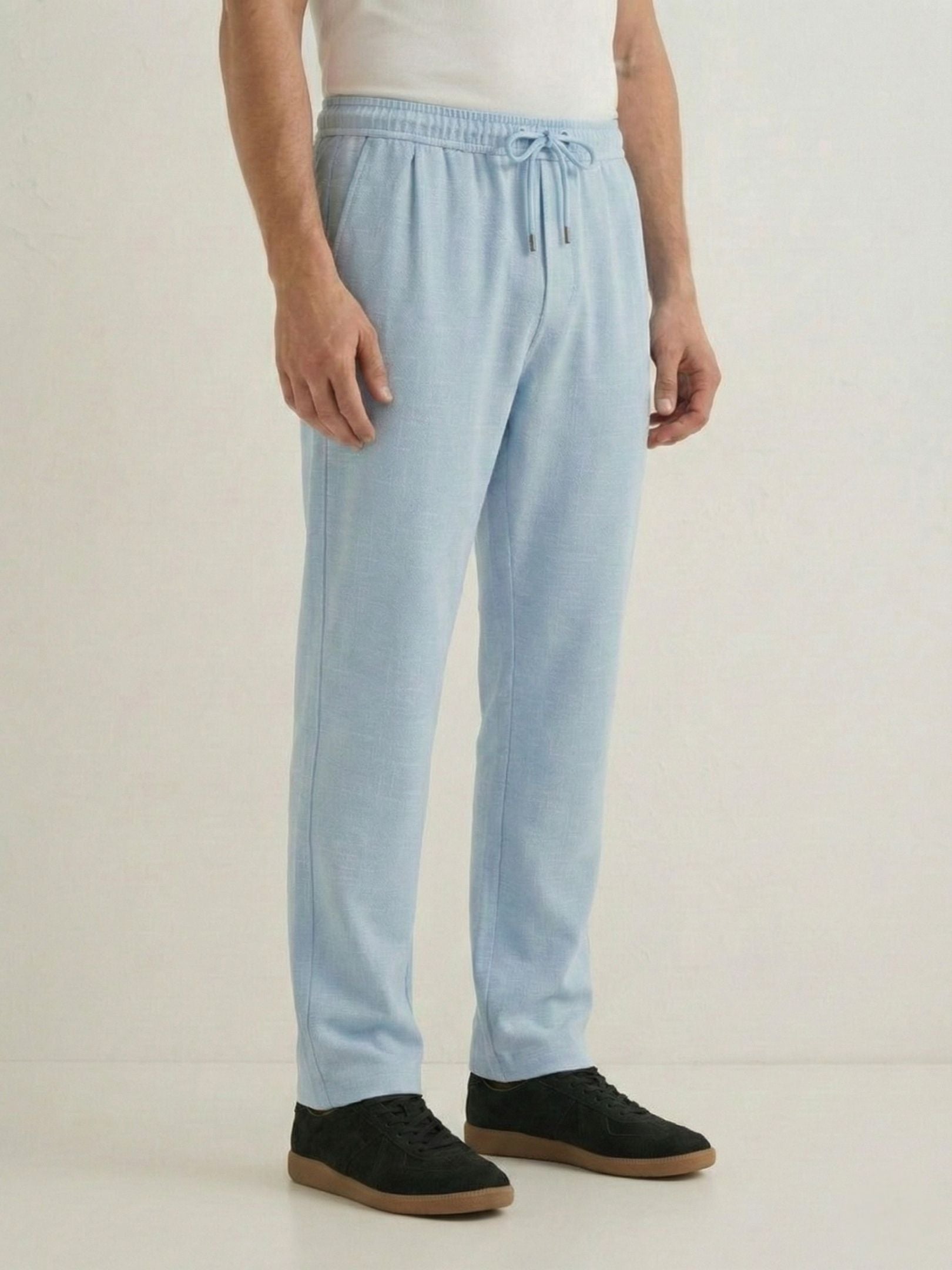 Men's Sky Blue Textured Relaxed Fit Trousers with Elasticated Drawstring Waist